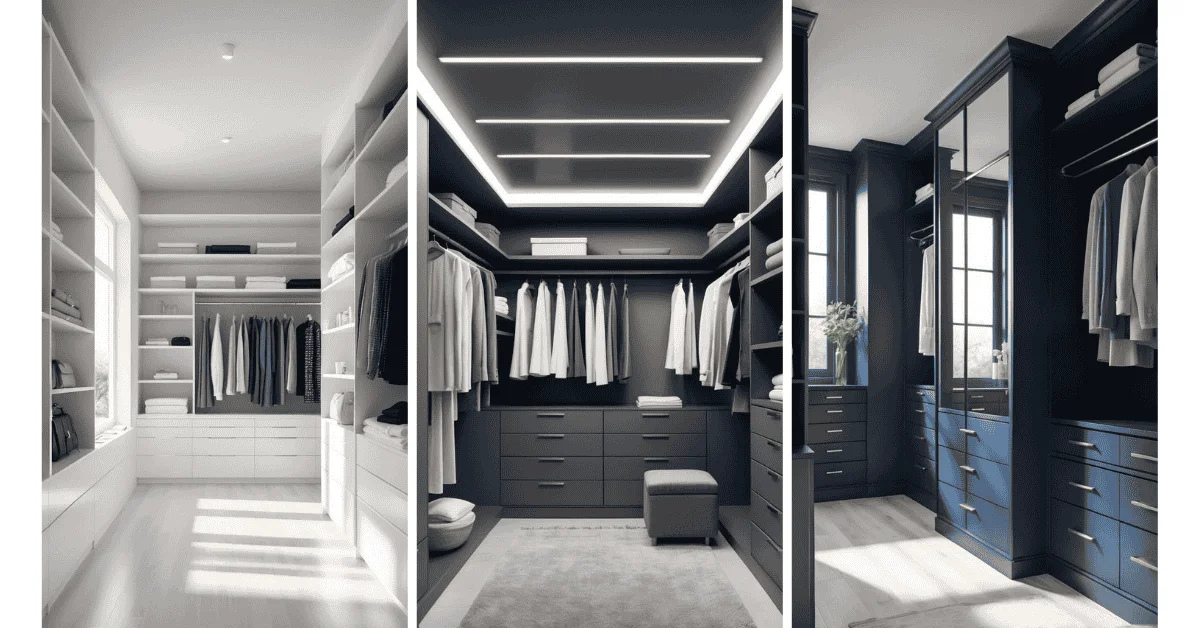 While neutral tones are timeless and blend well with adjacent rooms, don’t hesitate to express your personality with bold or unique colors that make your closet stand out.
