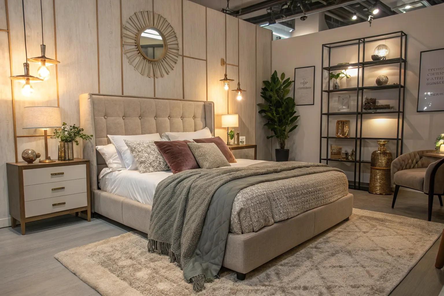 Strategically placing mirrors near your corner bed reflects natural and artificial light, visually expanding the room and brightening the atmosphere.