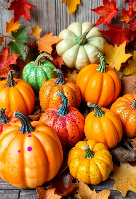 Introduce a dazzling touch to your mini pumpkins with glitter accents. Start by applying a thin layer of adhesive, then generously sprinkle your chosen glitter color over the surface. Let it dry fully before showcasing. For a dynamic effect, mix multiple glitter shades, or keep it monochromatic for a sleek, unified look that adds a festive shimmer to your autumn decor.
