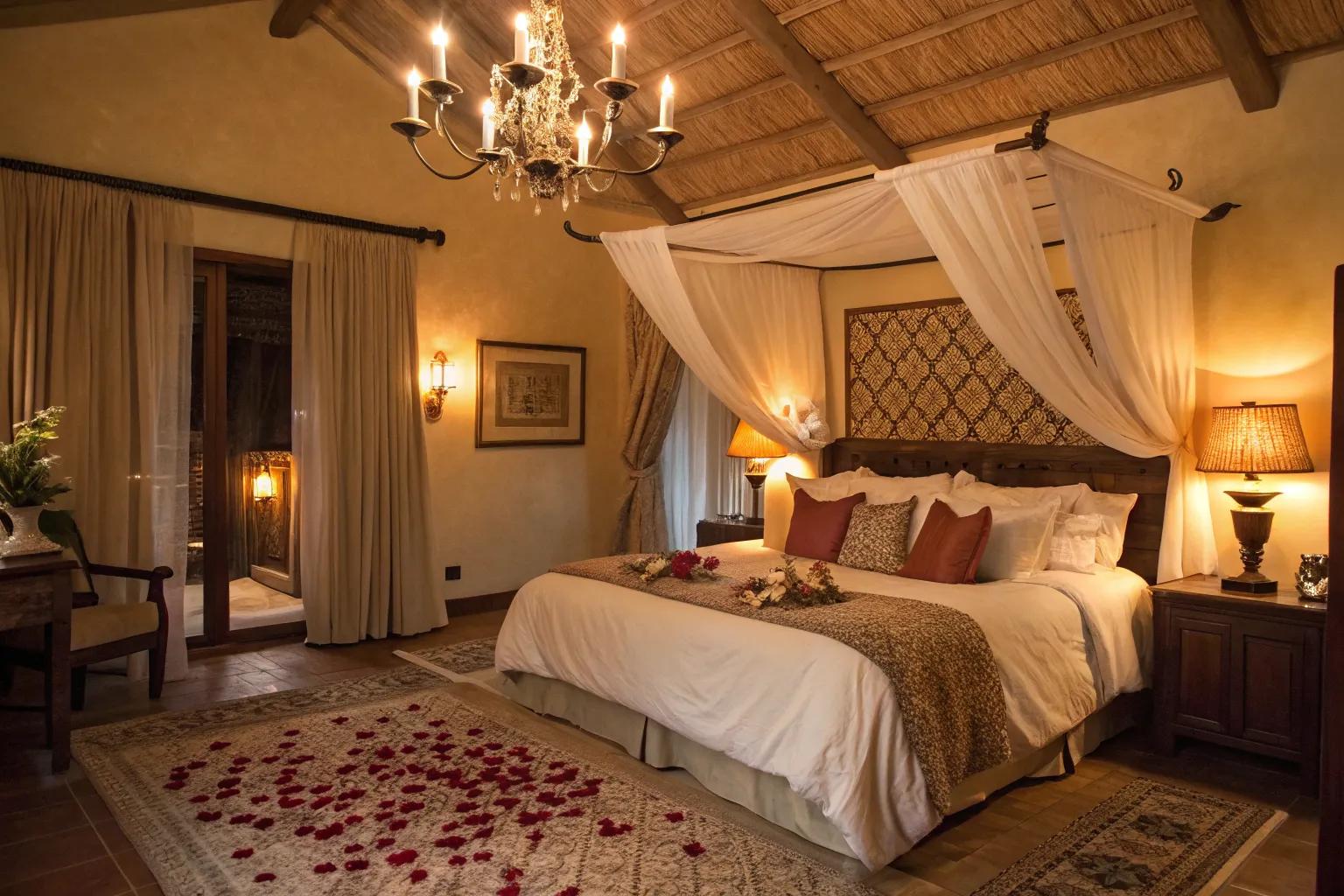 Soft, layered lighting creates a romantic ambiance.