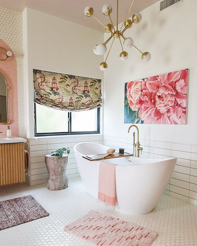 Instantly uplift your bathroom’s vibe by adding vibrant, moisture-resistant artwork. Choose pieces that either harmonize with your current color scheme or boldly contrast it. Properly sealed and framed, these artworks withstand humidity, ensuring your bathroom stays lively and stylish.