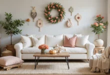 Create a welcoming atmosphere by mixing different textures. Combine chunky knit pillows with smooth satin cushions and soft faux fur throws for a tactile and visually rich environment. A plush area rug underfoot adds warmth and ties the look together.