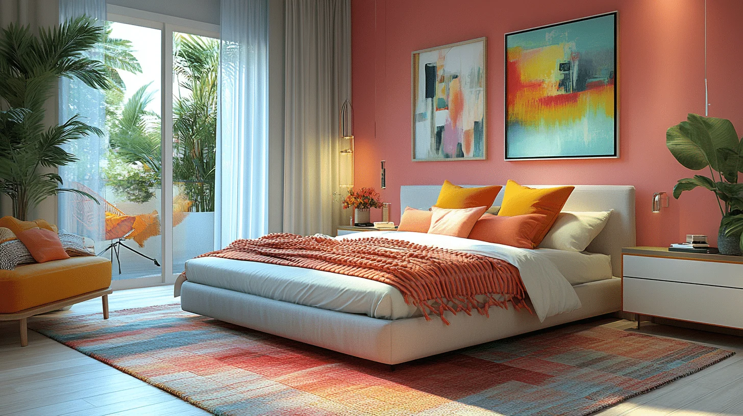 Capture the essence of the coast by combining coral pink with natural beach-inspired elements like driftwood and seashells. This palette creates a warm, relaxed ambiance reminiscent of a sunny beach escape. Add this coastal-inspired bedroom to your pink bedroom ideas for a refreshing vibe.
