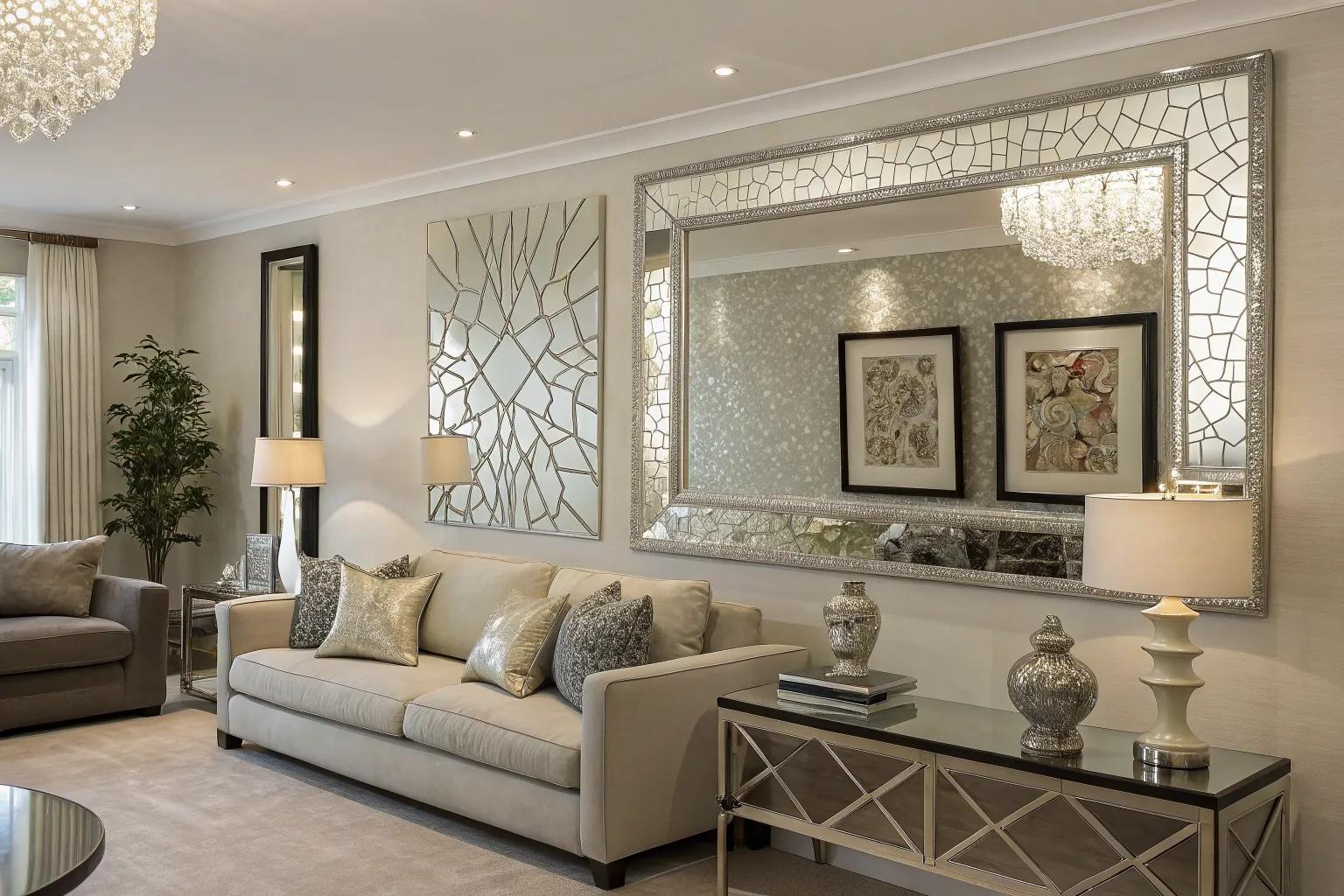 Mirrored wall hangings elevate plain walls with reflective artistry.