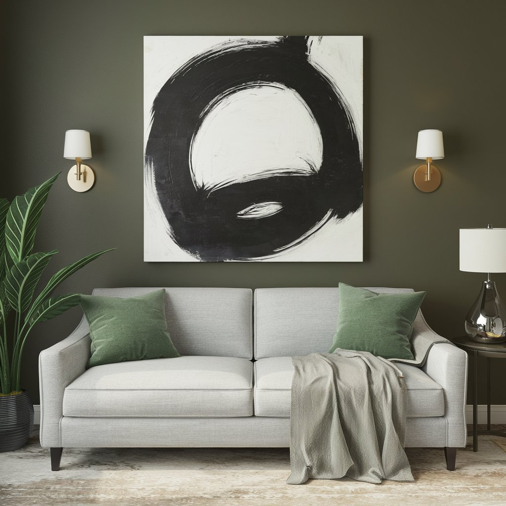 Select a large-scale abstract painting to command attention and inject sophistication. This style is ideal for minimalist spaces seeking a vibrant focal point.