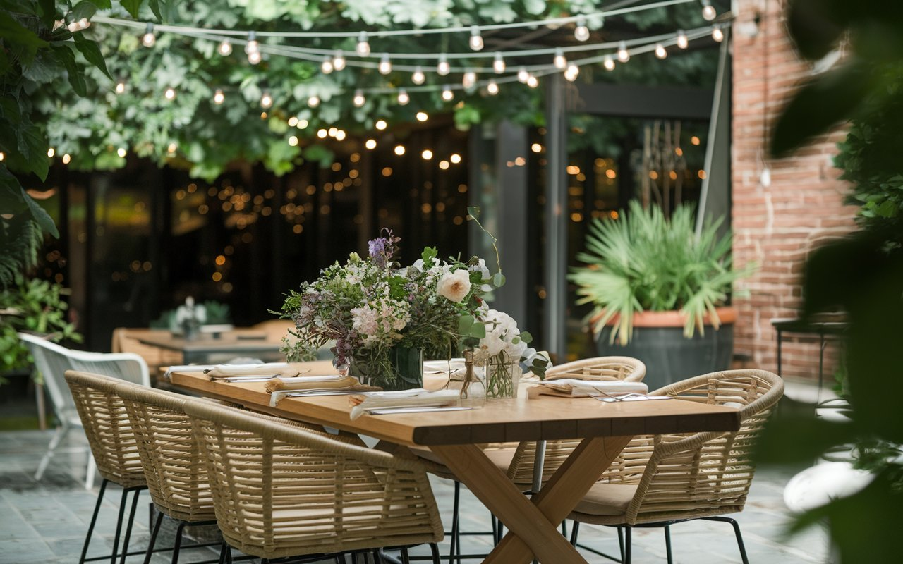 When space is at a premium, a foldable bistro table is an excellent choice for balconies or compact patios. Lightweight and easy to store, it’s perfect for intimate meals. Complement it with café-style chairs and ambient string lighting to create a cozy nook.
