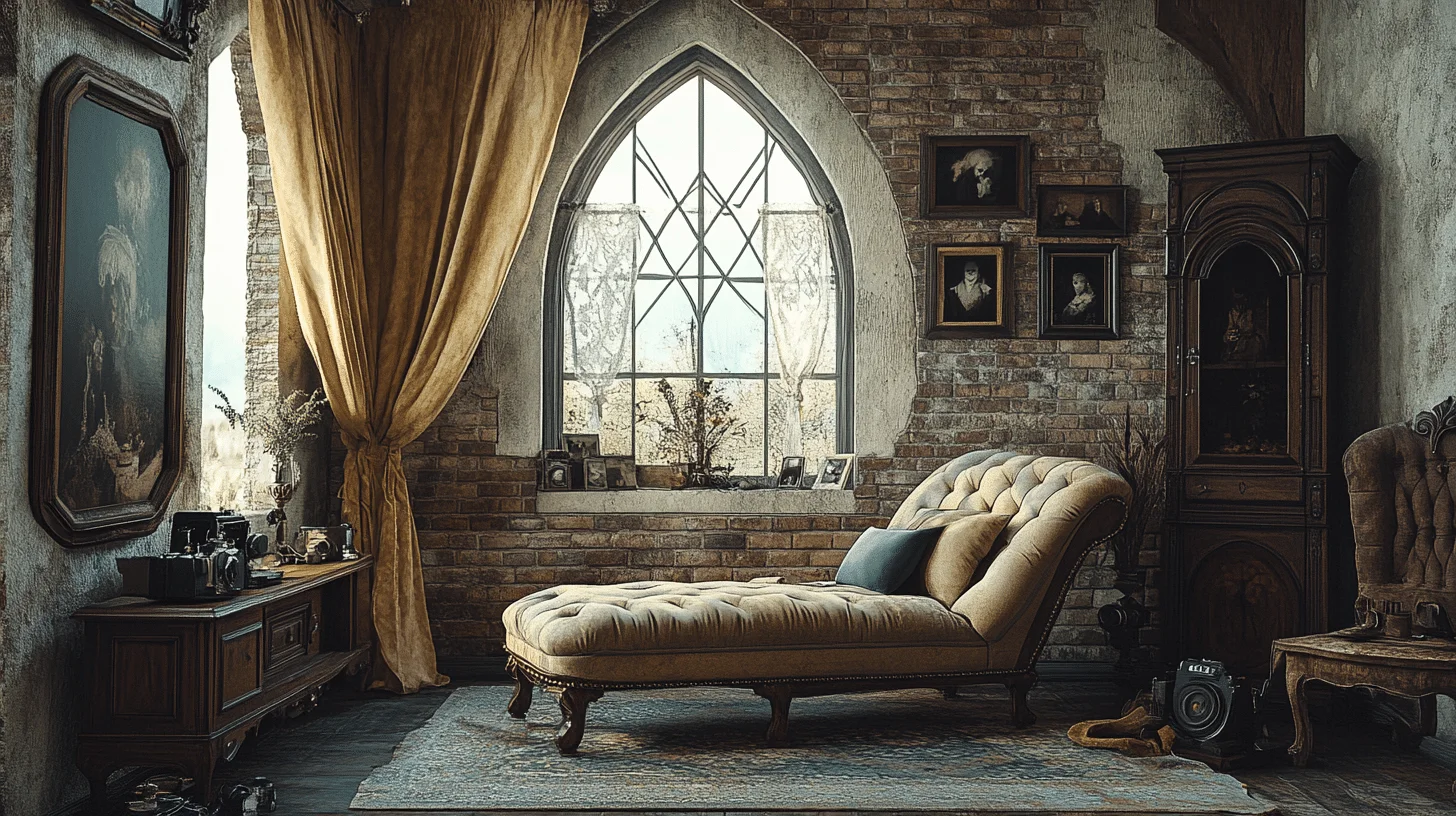 Create intimate settings that celebrate the warm glow of candlelight, a hallmark of gothic vintage ambiance. Vintage candle holders and mirrors amplify the flickering flames, while natural stone and dark wood elements anchor the ethereal atmosphere. This approach fosters a cozy yet mysterious environment perfect for quiet evenings.