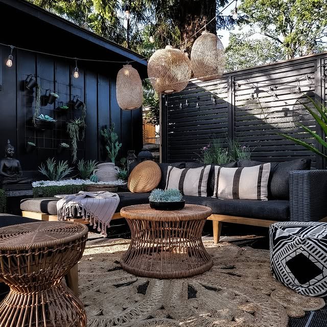 Suspended lanterns cast a gentle, inviting glow that transforms your patio into a cozy haven as dusk falls. Whether crafted from metal, glass, or woven fibers, these lights add character and warmth. Pair them with string lights or candles to layer your lighting and create a soothing ambiance. Perfectly positioned above dining or seating areas, hanging lanterns serve as both functional illumination and decorative accents. Check out elegant outdoor lanterns to brighten your evenings.