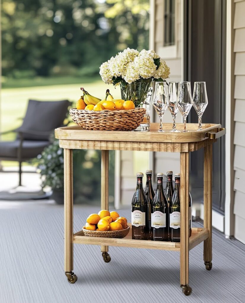 A chic outdoor bar cart combines practicality with style, keeping beverages and snacks within easy reach during gatherings. Its portability allows you to move it wherever needed, while its design adds a decorative touch. Whether stationed poolside or on the patio, it simplifies hosting and elevates your outdoor ambiance. Find versatile outdoor bar carts to complement your space.