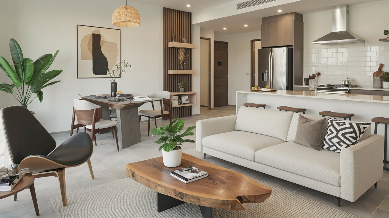 El minimalismo continúa siendo una tendencia relevante. Prioriza muebles esenciales, paletas neutras y una distribución funcional para lograr un ambiente despejado y armonioso.
