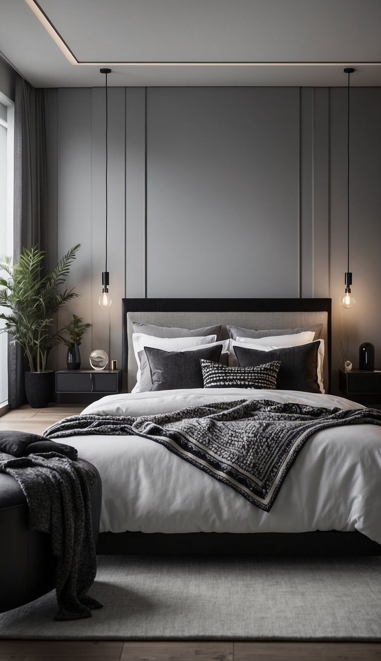 Choosing the right balance of black, white, and gray is essential to setting the tone of your bedroom. These colors can evoke feelings ranging from dramatic to tranquil, depending on their application.