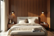 If permitted, add a wooden headboard or create a DIY wood panel behind your bed. This simple addition brings a cozy, cabin-like atmosphere that enhances the overall warmth of your space.