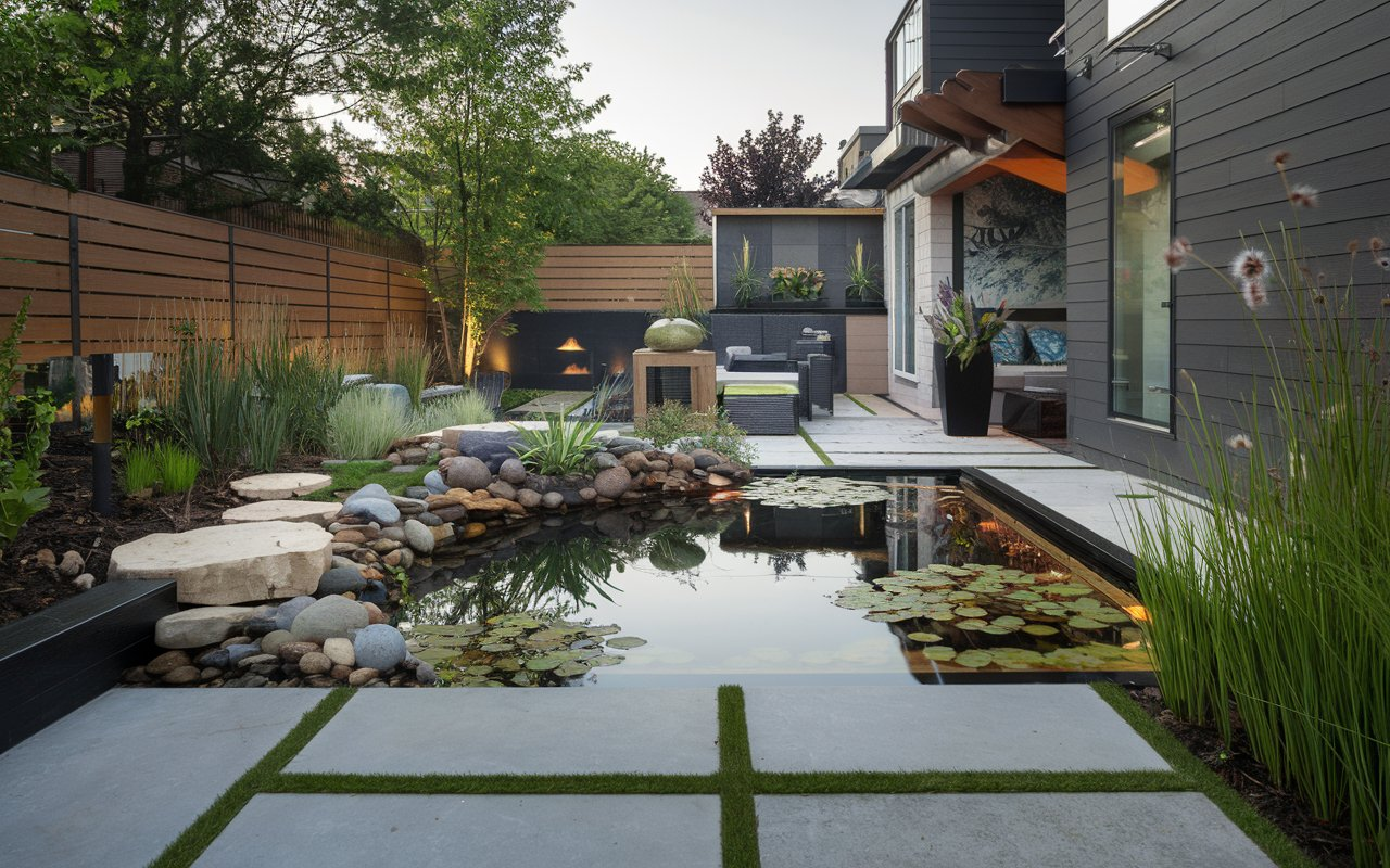 For a contemporary aesthetic, opt for ponds with clean, geometric shapes like rectangles or circles. This style complements modern architecture and landscaping.