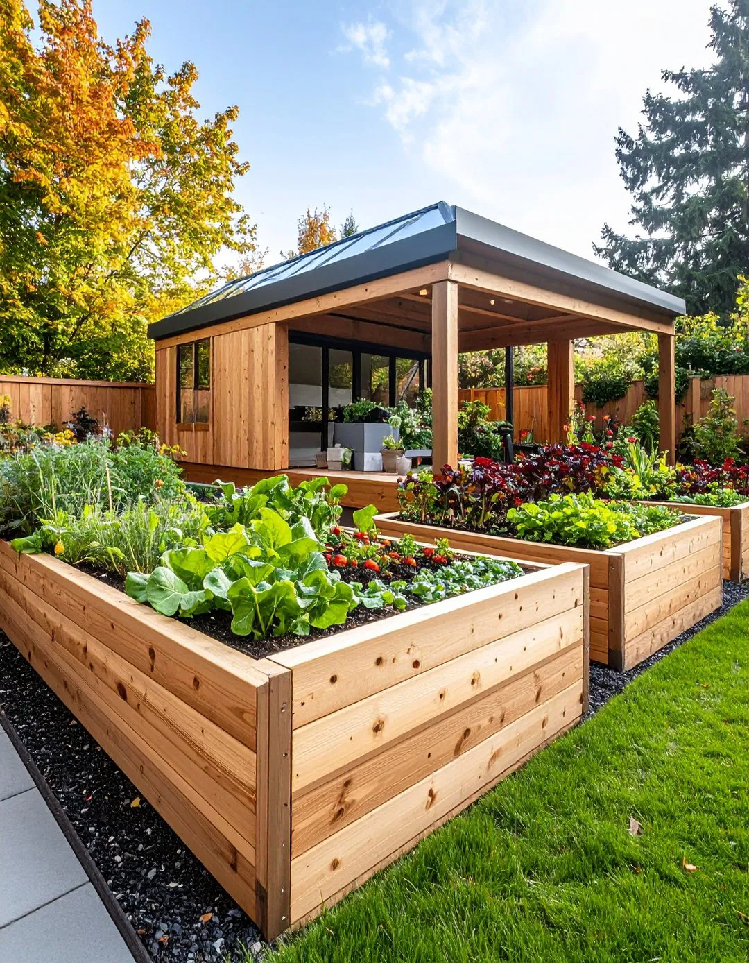 Elegant Cedar Raised Beds with Privacy Enhancements