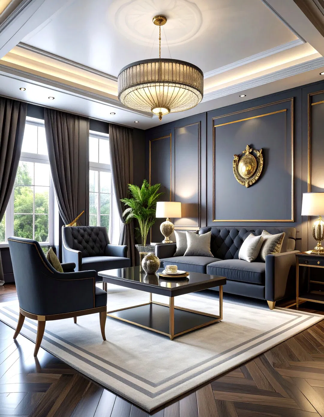 Embrace sleek metropolitan living with chrome and glass surfaces, neon accents, and advanced technology. Floor-to-ceiling windows or large screens display dynamic cityscapes and traffic flows. Modern furniture with clean lines and integrated tech offers comfort and style. Hidden automation systems emphasize futuristic convenience. Cool blues and silvers create a high-tech urban vibe. Integrated entertainment and communication networks reflect the fast-paced city lifestyle. Minimalist storage solutions maintain a clutter-free, sophisticated environment.