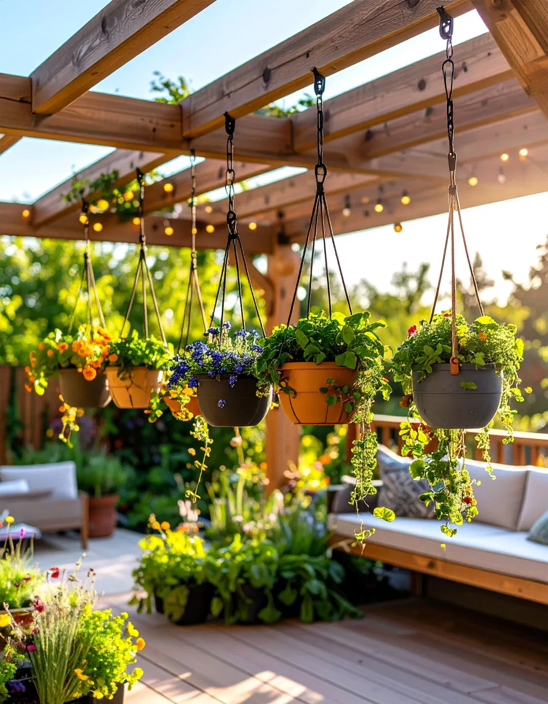 Imagine utilizing overhead space to boost your garden’s productivity and visual appeal. Hanging baskets suspended from pergolas, decks, or tree branches create aerial growing zones perfect for trailing vegetables and herbs. Ideal for cherry tomatoes, strawberries, and cascading herbs, these baskets maximize vertical space and add layers of greenery. Elevated positions improve drainage, airflow, and pest protection, while automated drip irrigation can simplify watering multiple baskets.