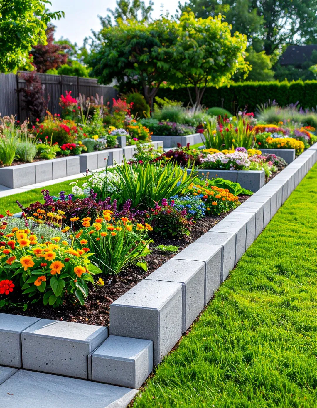 Concrete blocks salvaged from demolition sites offer a robust and modern edging solution. Their geometric shapes can be stacked or aligned to create clean lines or gentle curves. The hollow centers provide opportunities for additional planting or decorative stone placement. Concrete blocks can be painted or stained to harmonize with your garden’s palette, making them a versatile choice for contemporary landscapes. Their substantial weight ensures they remain stable on slopes without extra anchoring.