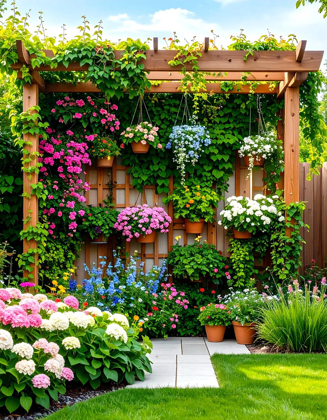 Maximize limited space in shaded gardens by incorporating vertical elements with climbing vines. Shade-tolerant species such as English ivy, climbing hydrangea, and Virginia creeper can cover walls, fences, or trellises with lush foliage and seasonal interest. Fast-growing annual vines like cardinal climber or moon vine offer quick coverage and vibrant flowers in partial shade. Install sturdy supports capable of bearing mature vine weight and plan for regular pruning to manage growth. Use vines to screen unattractive views, enhance privacy, or create living walls that improve air quality. Combine vertical plantings with ground covers for a fully layered, dynamic garden design.