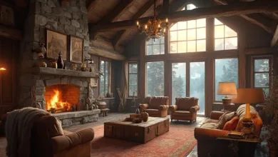 Incorporate natural wood finishes, plaid throws, and warm, ambient lighting to evoke the charm of a mountain lodge. This style offers a nostalgic, inviting atmosphere that makes guests feel right at home, even if you’re nestled in the heart of the city.
