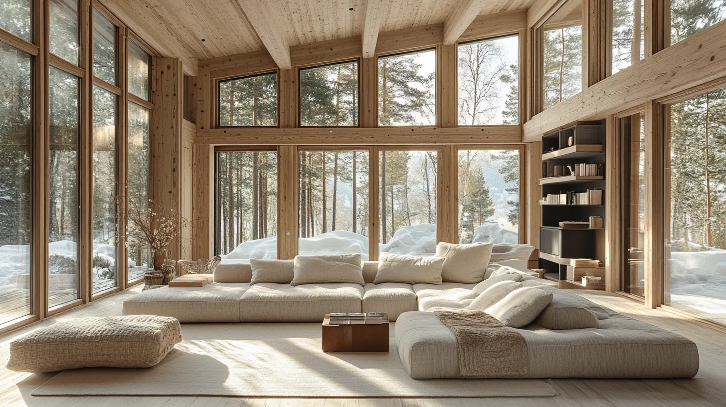 Warm lighting, natural wood finishes, and plush fabrics create a snug refuge from the chill. The soft illumination and tactile layers invite you to unwind and linger, fostering an ambiance of ultimate comfort. Thick knitted throws and deeply cushioned furniture combine to shield against the cold, making this style ideal for those who cherish a snug sanctuary during snowy months. Think of it as your personal haven for winter hibernation.