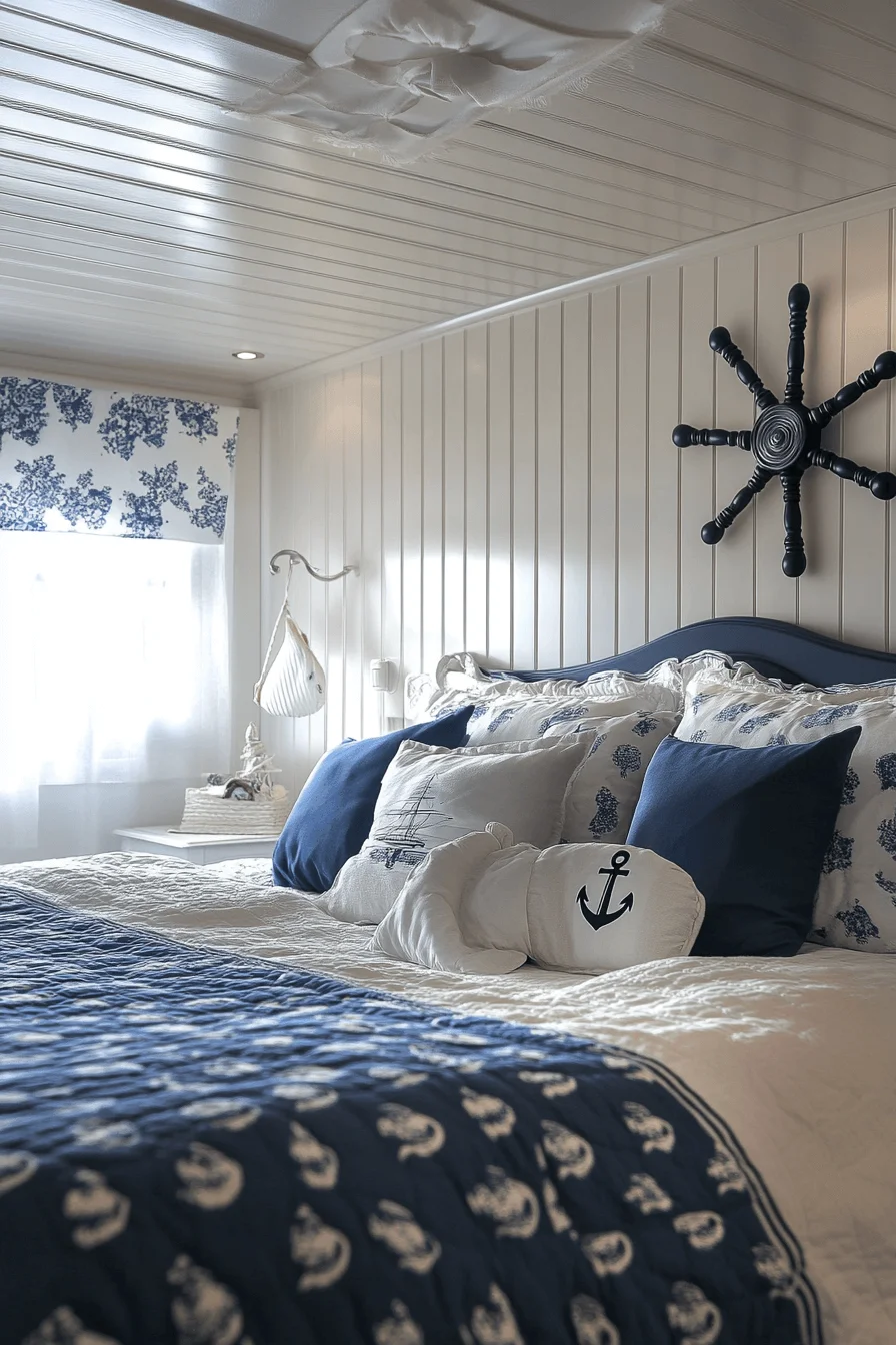 Bring the soothing essence of the sea indoors with a coastal-themed guest room. Utilize shades of soft blues, crisp whites, and driftwood-inspired finishes. Nautical elements like rope accents and seashell decor enhance the tranquil, beachy ambiance, perfect for unwinding.