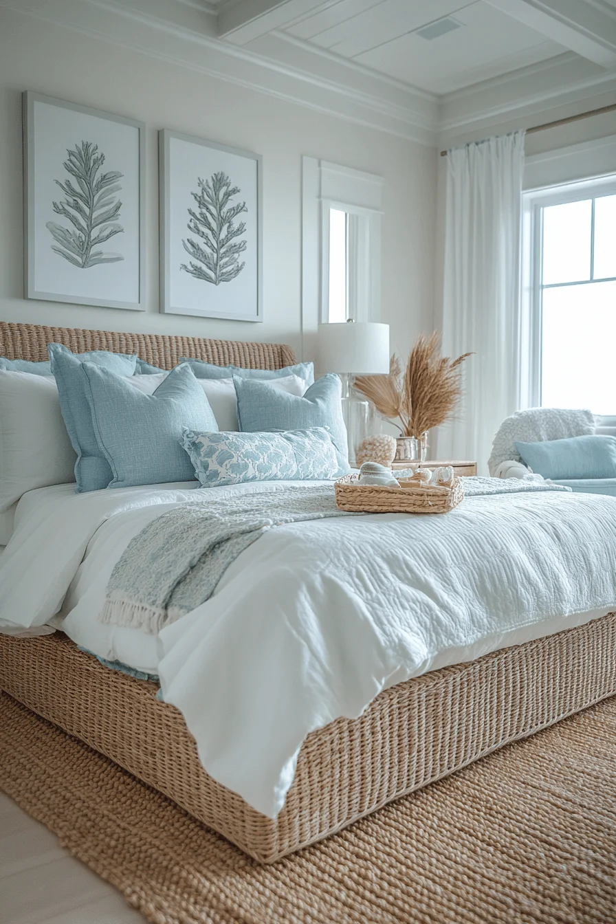 Capture the essence of the coast with airy linens, coral-inspired accents, and sea glass color palettes. Light wood furniture and flowing fabrics maintain a relaxed, beachy vibe that’s both refreshing and inviting.