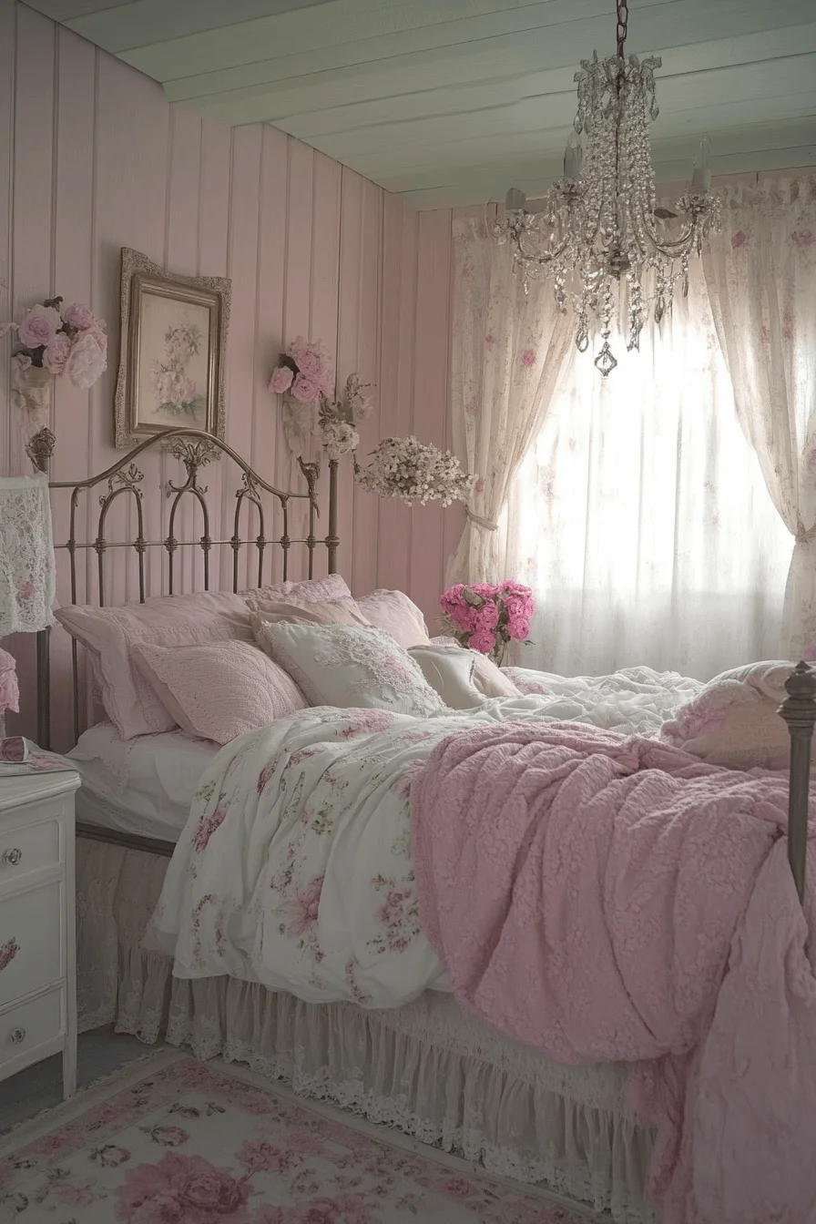 Pastel tones like blush pink, mint green, and creamy beige create a dreamy, gentle atmosphere. Incorporate subtle patterns and soft lighting to enhance the room’s romantic and calming qualities.