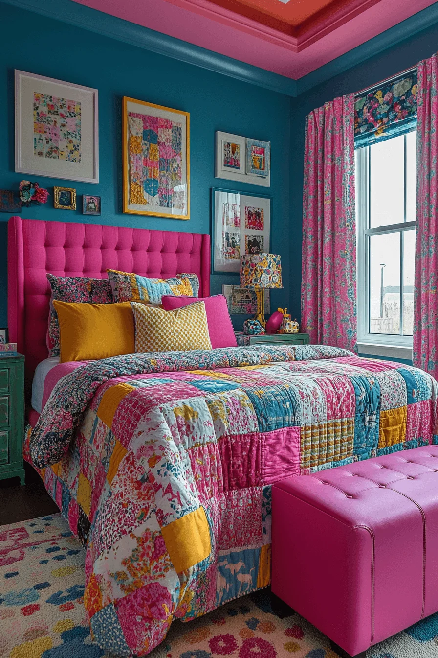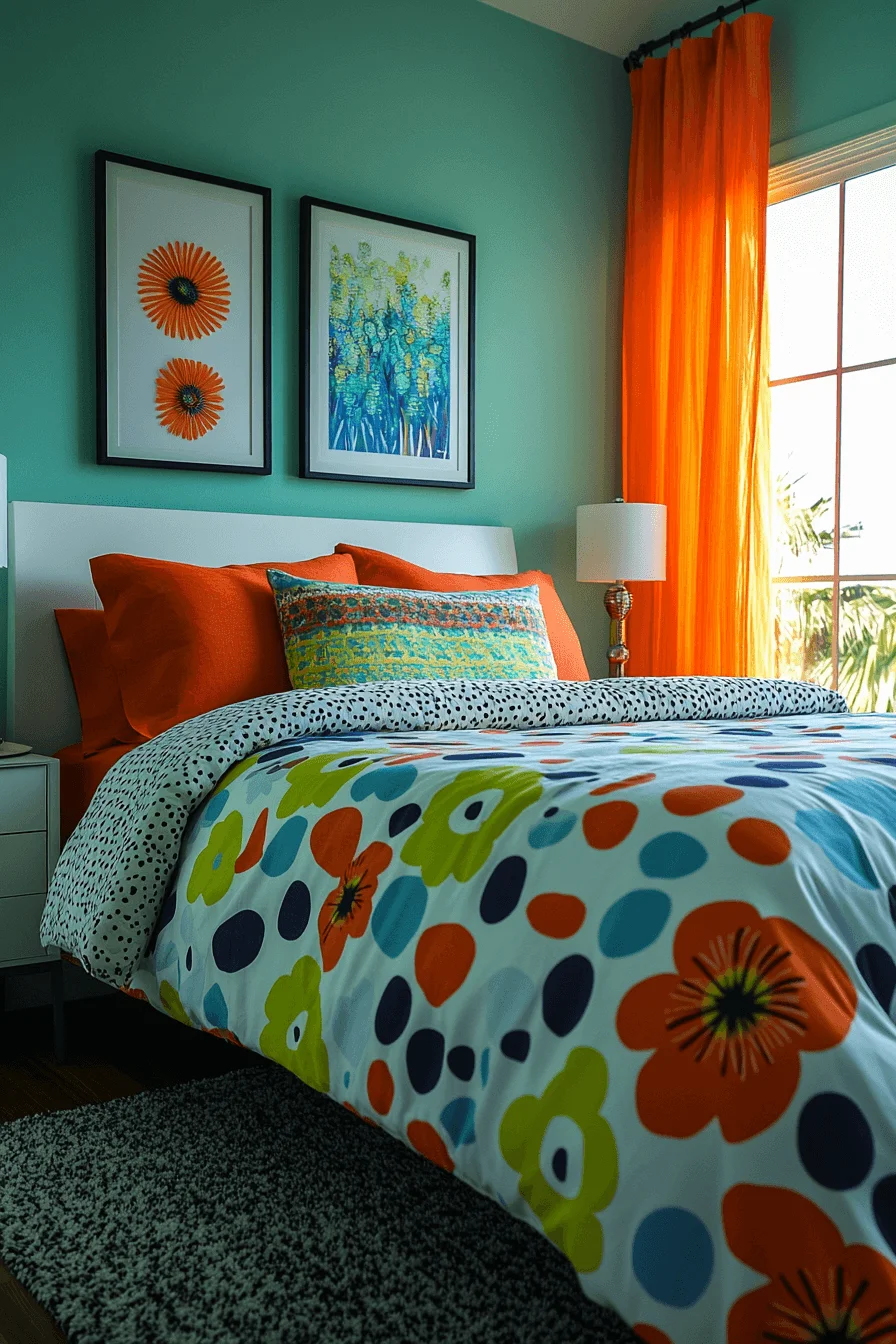 Bright colors, whimsical patterns, and quirky accessories infuse the guest room with youthful energy. This lively style sparks joy and creates a fun, inviting atmosphere for visitors.