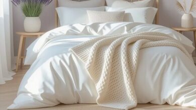 Begin with a low-profile platform bed crafted from light wood. Layer it with a stone-hued duvet complemented by a terracotta throw and cushions in muted rust, clay, and cream shades. Keeping the color scheme cohesive evokes the gentle hues of a desert sunrise.
