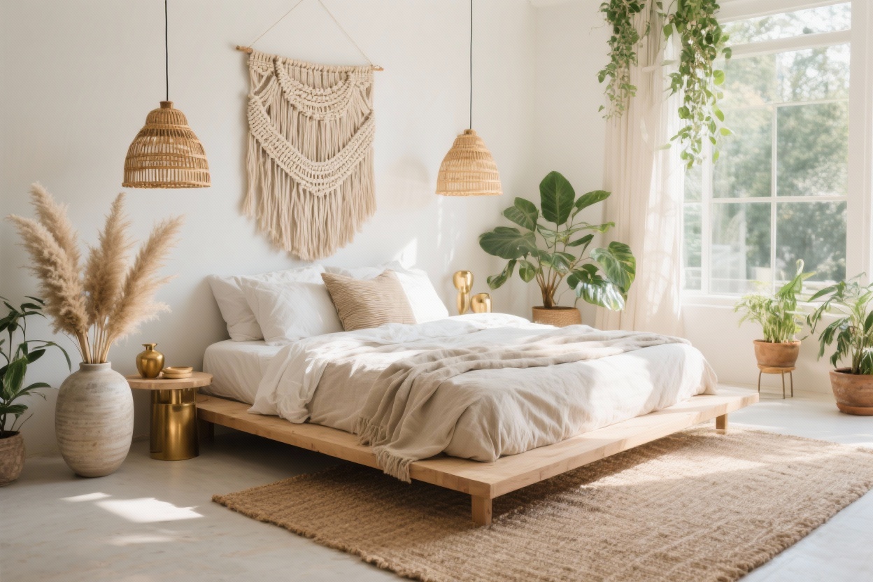 This style fuses the textured warmth of boho with the minimalist elegance of Japandi design. It emphasizes simplicity, open space, and artisanal craftsmanship.