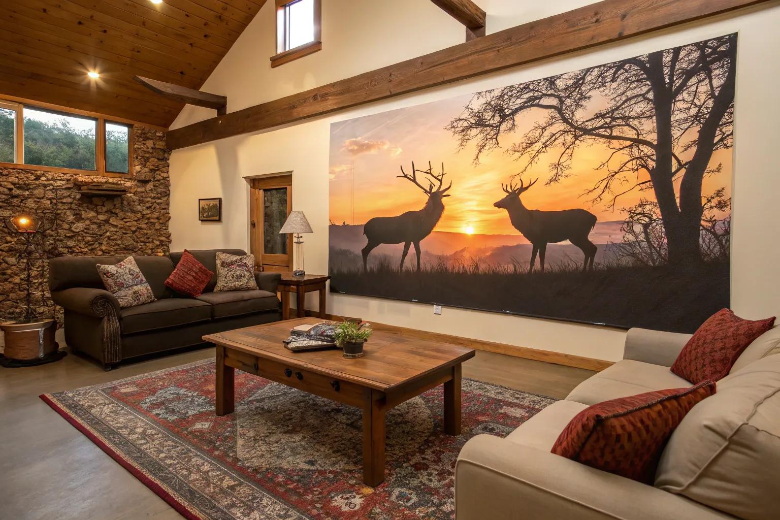 Celebrate the elegance of wildlife by featuring creatures such as elk and waterfowl in their authentic environments. This approach brings a soothing, natural vibe indoors.
