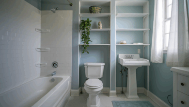 Expert Tip: Use decorative storage boxes on shelves to keep essentials organized and visually appealing.