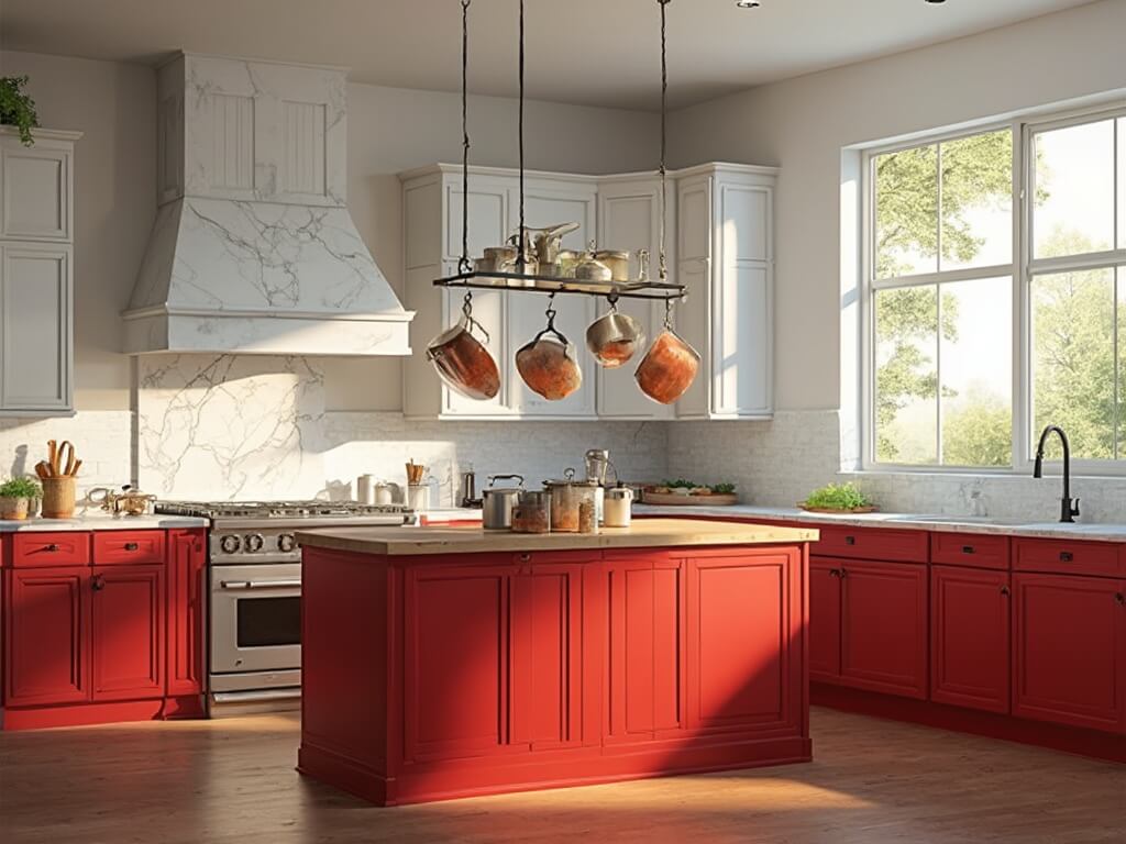 Red offers a rich palette of tones, each bringing a unique ambiance to your kitchen: