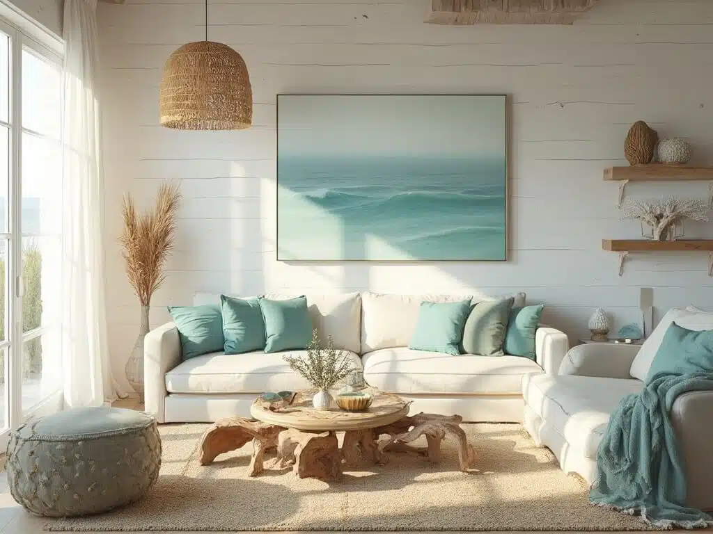 Explore quality coastal decor pieces to bring your vision to life. For natural fiber rugs, check out jute rugs that add texture and warmth. Enhance your space with seafoam green pillows for a pop of coastal color. Finally, consider driftwood decor to introduce authentic seaside elements.