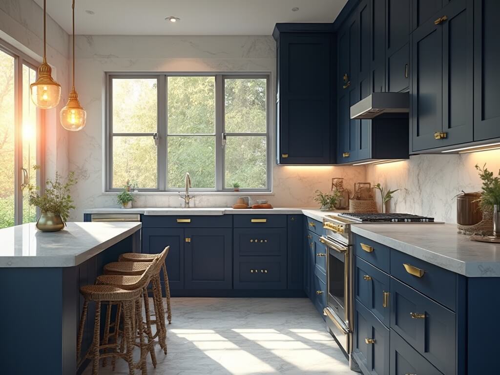 Insider Tip: Navy blue cabinetry is incredibly versatile, effortlessly adapting to your personal style preferences rather than dictating them.