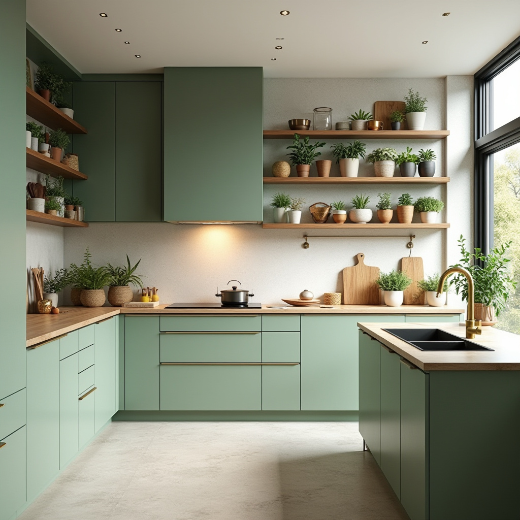 1. Serene Sage Green Kitchen with Fresh Herb Gardens