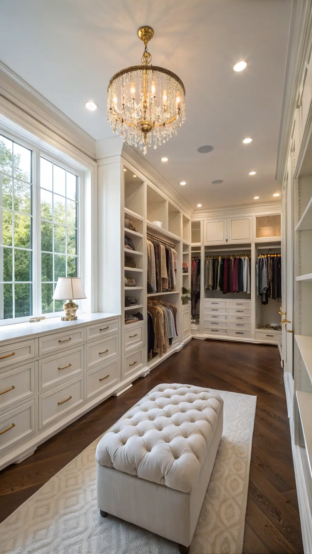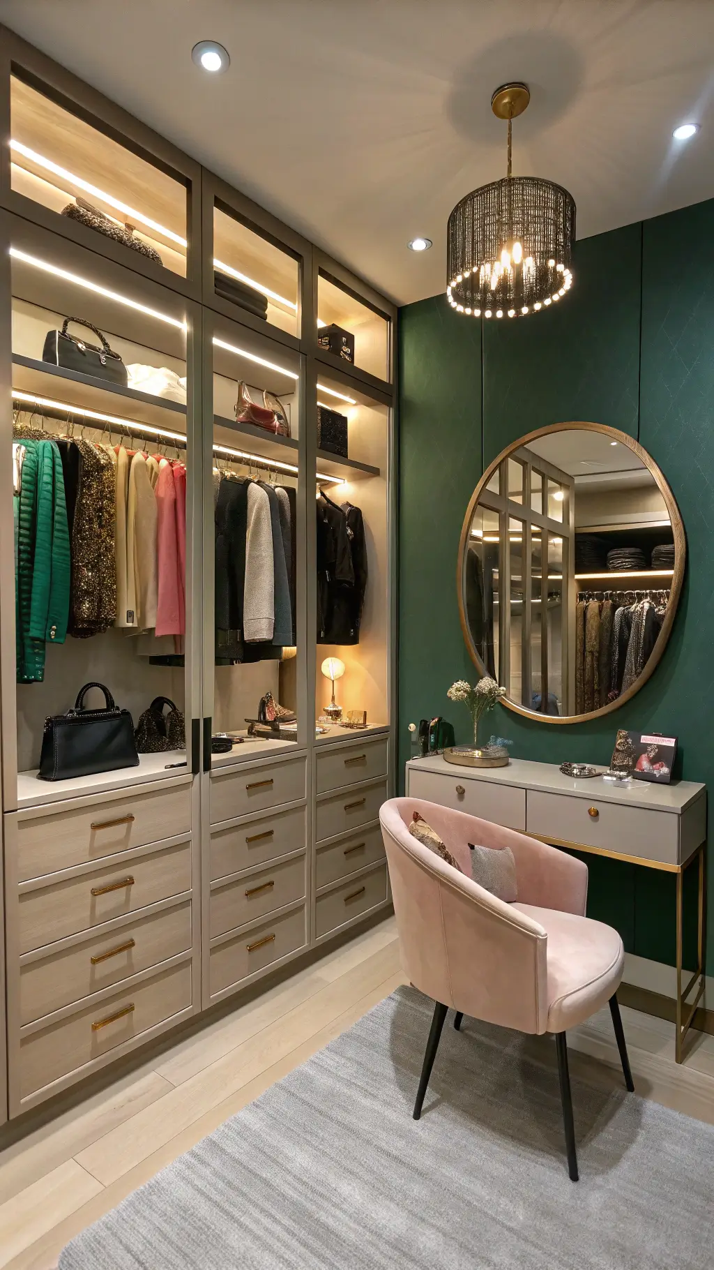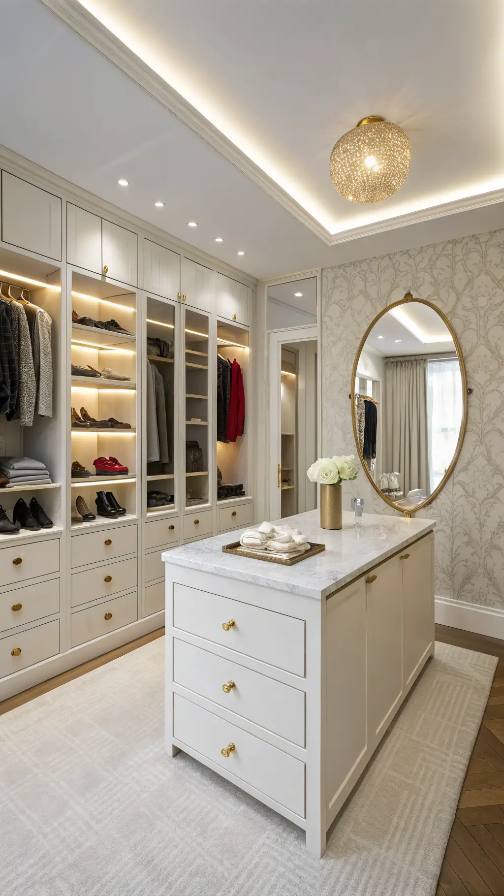 Strategic lighting can redefine your closet from a simple storage area to a glamorous dressing suite. Incorporate LED strip lights along shelves, motion-sensor spotlights, or elegant pendant fixtures to brighten your space and highlight your collection.
