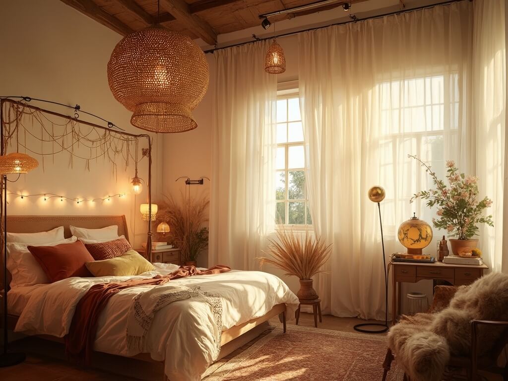 Transform Your Boho Bedroom with Warm, Textured Lighting for a Dreamy Sanctuary