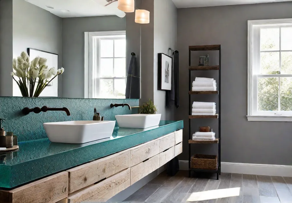 Imagine building your bathroom with materials that not only look stunning but also divert waste from landfills. Utilizing recycled and reclaimed elements not only supports environmental preservation but also infuses your space with distinctive character and charm.
